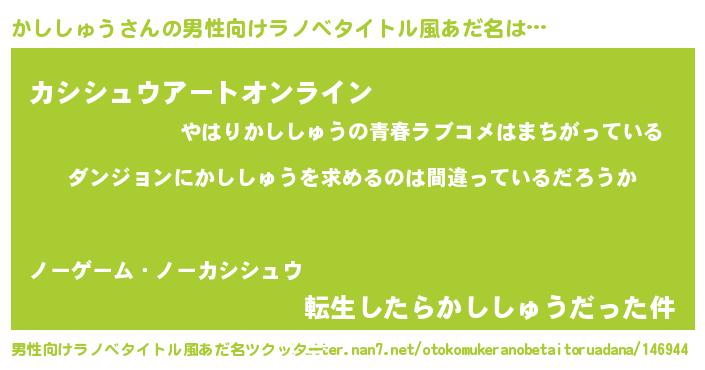 かししゅうさんの男性向けラノベタイトル風あだ名をツクッター!