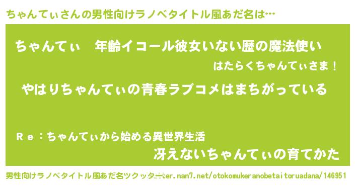 | 胡散臭い通販商品みたいなあだ名 | 『幸せが訪れる高級そうな壺…その名も「ちゃんてぃ」』 |
