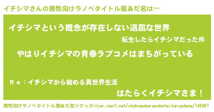 | 女子向けラノベタイトル風あだ名 | 『イチシマ伯爵の花嫁』 |
