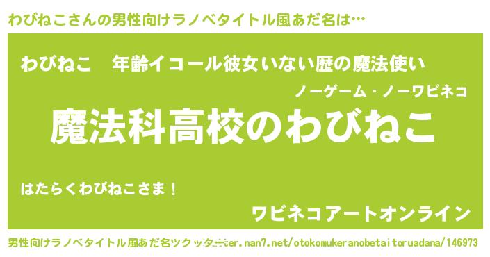 | 女子向けラノベタイトル風あだ名 | 『わびねこなんてお断りですっ。』 |