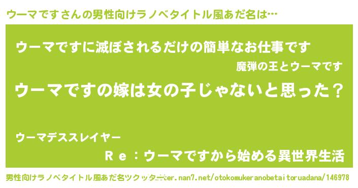 | 女子向けラノベタイトル風あだ名 | 『ウーマです様がみてる』 |