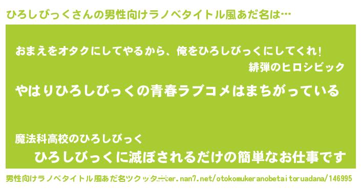 | 女子向けラノベタイトル風あだ名 | 『ひろしびっくの雑貨屋さん』 |