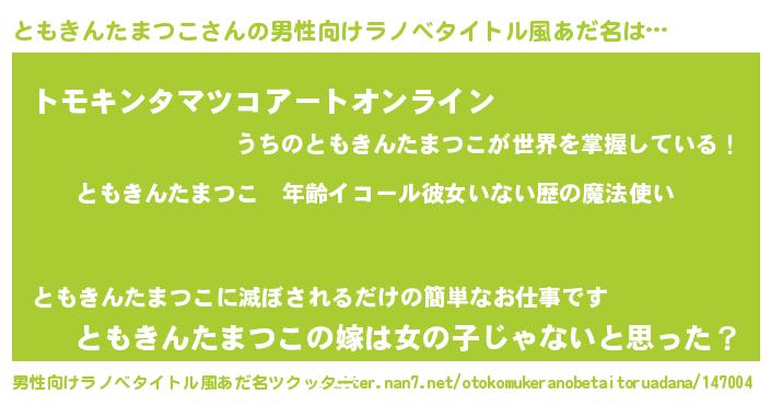 | 肩書あだ名 | 『ともきんたまつこ大佐』 |