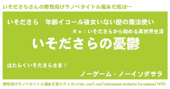 | 胡散臭い通販商品みたいなあだ名 | 『必ず成功する水晶球…その名も「いそださら」』 |