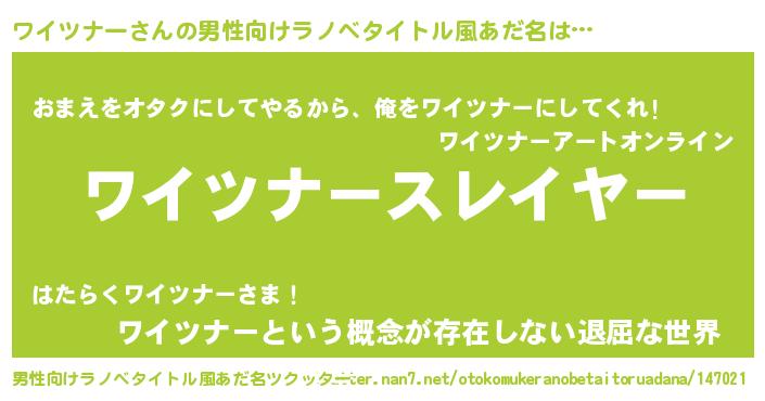 | ヘコむあだ名 | 『ワイツナー(震え声)』『ワイっふぃ~』 |