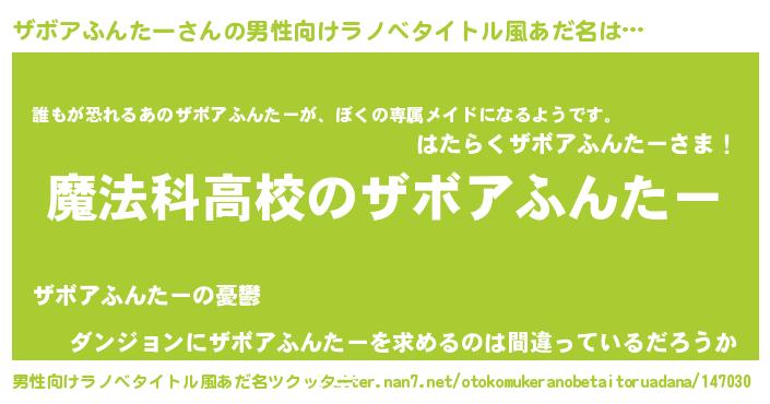 | 女子向けラノベタイトル風あだ名 | 『ザボアふんたーなんてお断りですっ。』 |