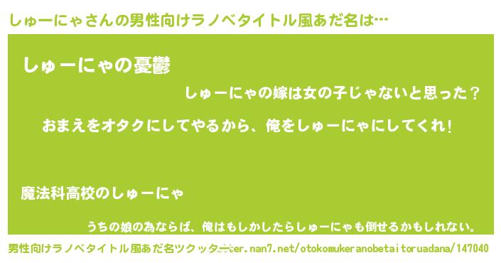 | ヒーロー風カッコイイあだ名 | 『正義の使者しゅーにゃ』『魔戒騎士シュ』 |