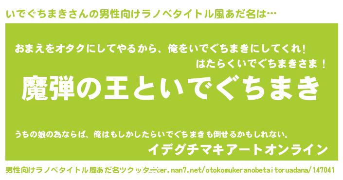 | 意味不明あだ名 | 『住所不定無職いでぐちまき(56歳)』 |