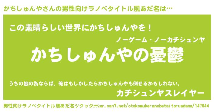 | 女子向けラノベタイトル風あだ名 | 『(仮)かちしゅんやのやんごとなき事情』 |