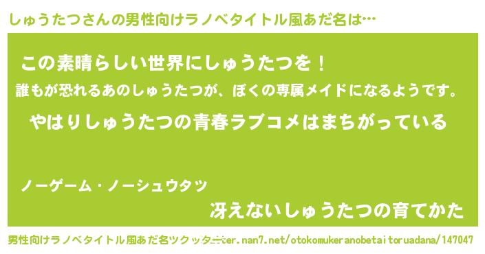 しゅうたつさんの男性向けラノベタイトル風あだ名をツクッター!