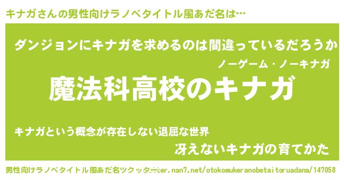 | 女子向けラノベタイトル風あだ名 | 『キナガなんてお断りですっ。』 |