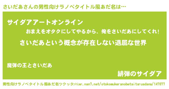 | 女子向けラノベタイトル風あだ名 | 『さいだあの契約王妃』『さいだあ恋絵巻』 |