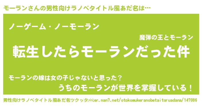 | 女子向けラノベタイトル風あだ名 | 『モーランの玉の輿計画!』 |
