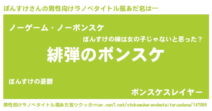 | ヒーロー風カッコイイあだ名 | 『正義の使者ぼんすけ』『天弓騎士ボン』 |