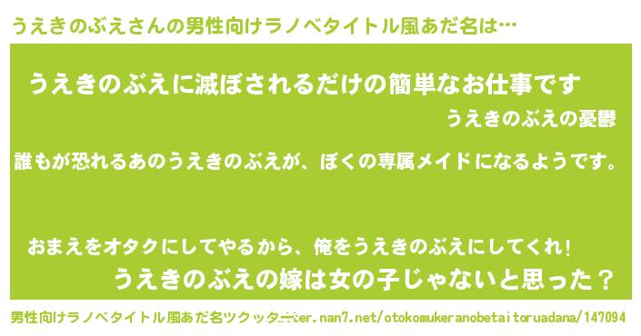 | 胡散臭い通販商品みたいなあだ名 | 『前代未聞の水素水…その名も「うえきのぶえ」』 |
