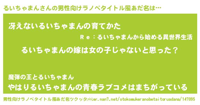 | 肩書あだ名 | 『るいちゃまん班長』『るいちゃまん船長』 |