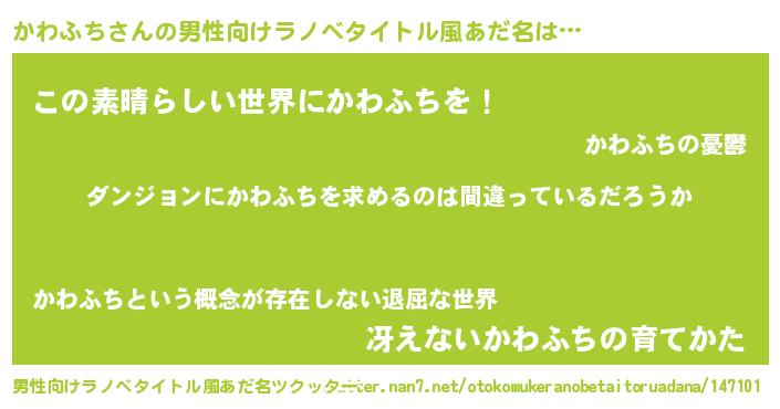 | 女子向けラノベタイトル風あだ名 | 『かわふちの卵を拾いまして』 |