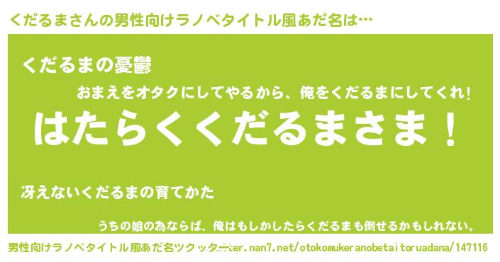 | 意味不明あだ名 | 『ペロリンくだるま』『自称くだるま』 |