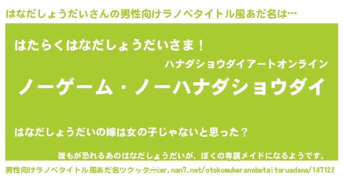 | ヘコむあだ名 | 『はなだしょうだい(小並感)』『はなにゅー』 |