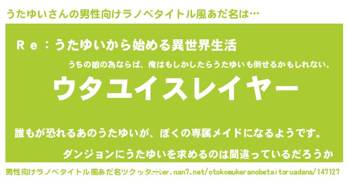 | ヒーロー風カッコイイあだ名 | 『ウルトラ戦士ウタユイ』『炎刃騎士ウタ』 |