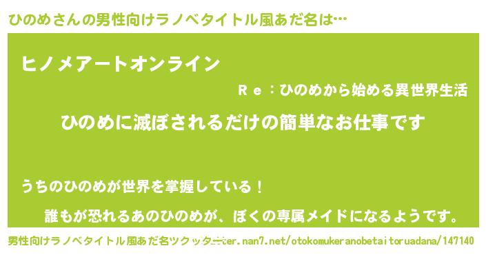 | 意味不明あだ名 | 『ペロリンひのめ』『永久保存ひのめ』 |