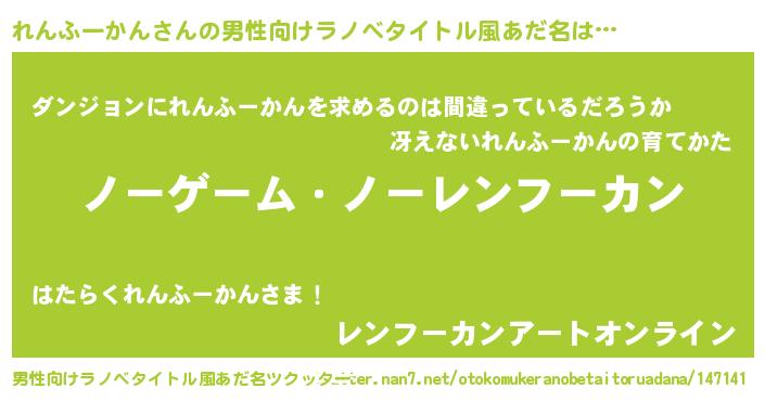 | 伝説のあだ名 | 『救世主となる錬金術士れんふーかん』 |