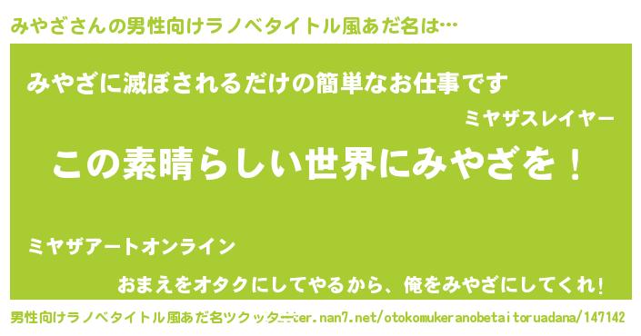 | ヒーロー風カッコイイあだ名 | 『仮面ミヤダー』『天空の使者みやざ』 |