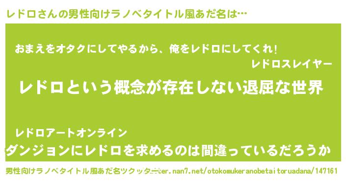 | 胡散臭い通販商品みたいなあだ名 | 『来世でも幸せになれる健康食品…その名も「レドロ」』 |