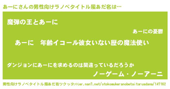 | ヘコむあだ名 | 『あーにゅー』『あー太郎』 |
