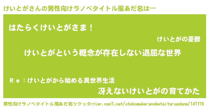 | 胡散臭い通販商品みたいなあだ名 | 『絶対に幸福をもたらす水素水…その名も「けいとが」』 |