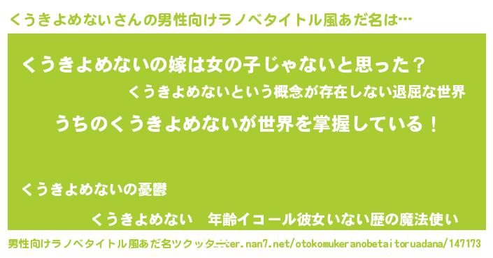 | 意味不明あだ名 | 『とにかく怪しいくうきよめない』 |