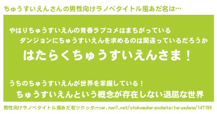 | 意味不明あだ名 | 『ちゅうすいえんフォーエバー』 |