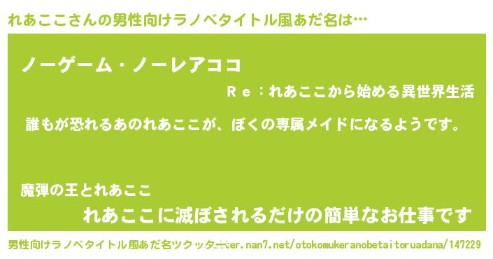 | 女子向けラノベタイトル風あだ名 | 『異世界でカフェれあここを開店しました。』 |