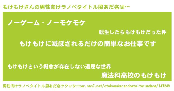 | ヘコむあだ名 | 『もけもけ(遠い目)』『もけにー』 |