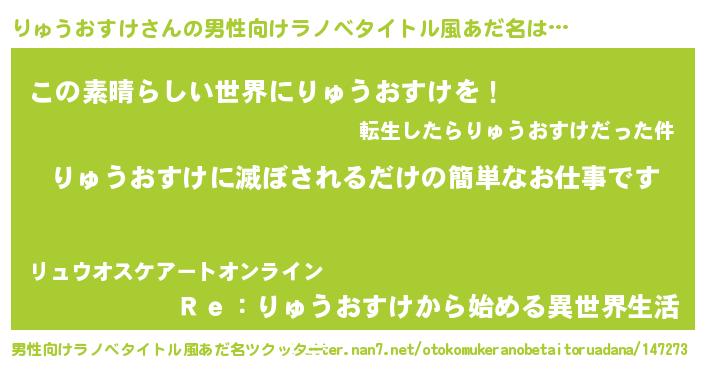 | 意味不明あだ名 | 『住所不定無職りゅうおすけ(89歳)』 |