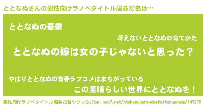 | 意味不明あだ名 | 『とにかく怪しいととなぬ』 |