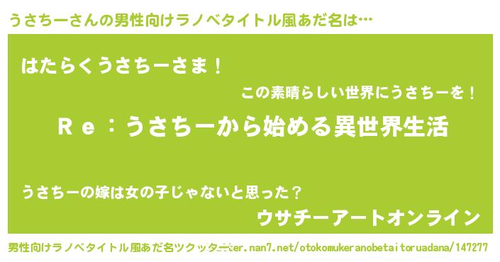 | ヘコむあだ名 | 『うさにゅー』『うさお』『酢こんぶ』 |
