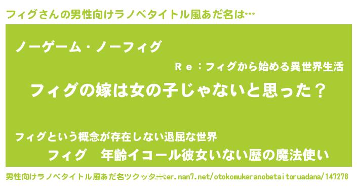 | 女子向けラノベタイトル風あだ名 | 『フィグ様がみてる』『死神フィグの再婚』 |