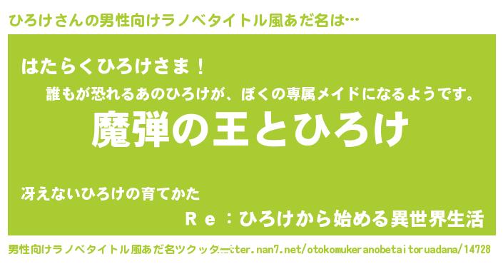 | ヒーロー風カッコイイあだ名 | 『仮面ヒロダー』『ウルトラ戦士ヒロケ』 |