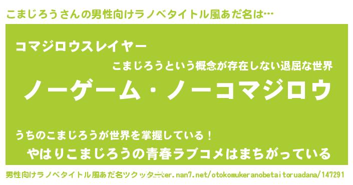 | 女子向けラノベタイトル風あだ名 | 『こまじろう恋絵巻』 |