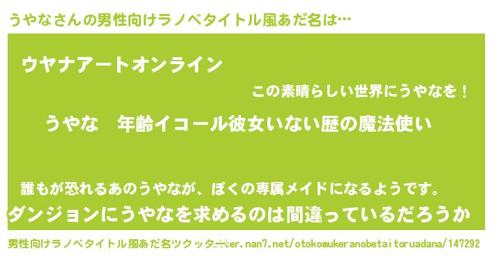 | 意味不明あだ名 | 『ヨモギ科うやな属』『ペロリンうやな』 |