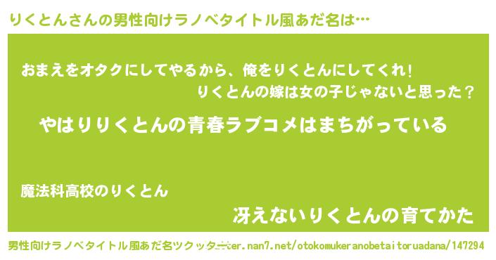 | 女子向けラノベタイトル風あだ名 | 『りくとんの雑貨屋さん』 |