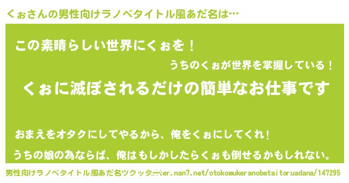 | 意味不明あだ名 | 『住所不定無職くぉ(47歳)』『永久保存くぉ』 |