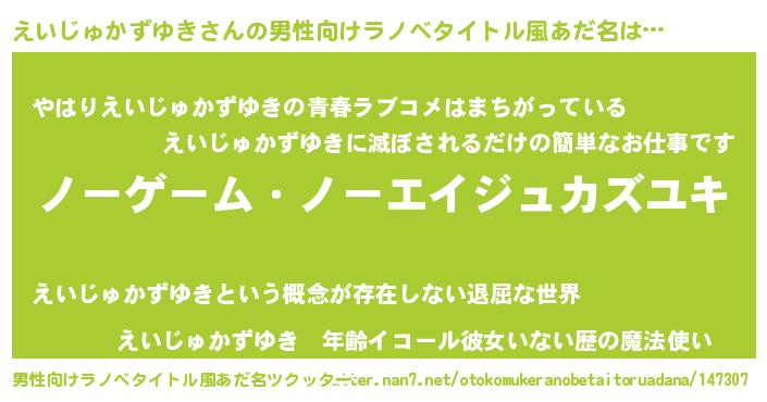| 意味不明あだ名 | 『眠気覚ましガムえいじゅかずゆき味』 |