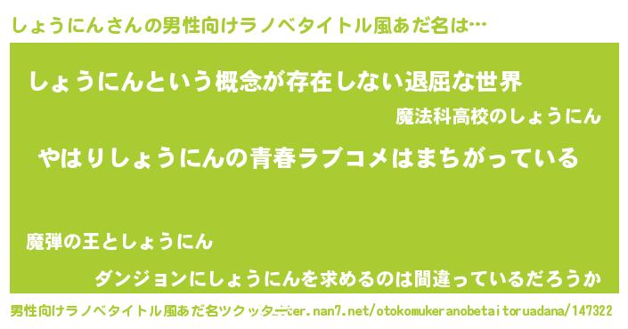 | 女子向けラノベタイトル風あだ名 | 『しょうにんの雑貨屋さん』 |