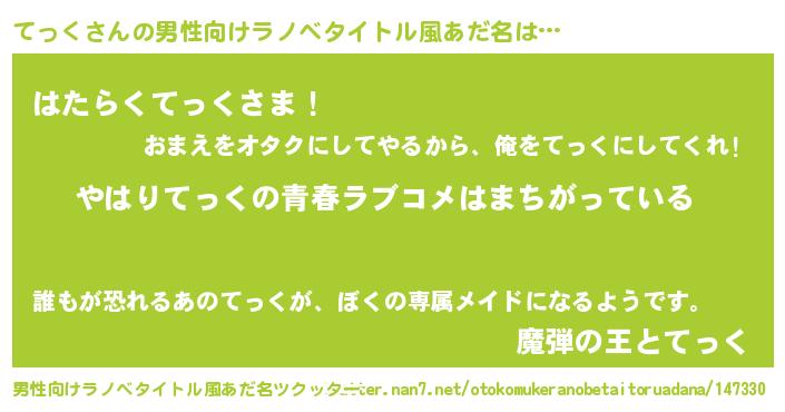 | ヘコむあだ名 | 『つくし』『てっく(遠い目)』 |