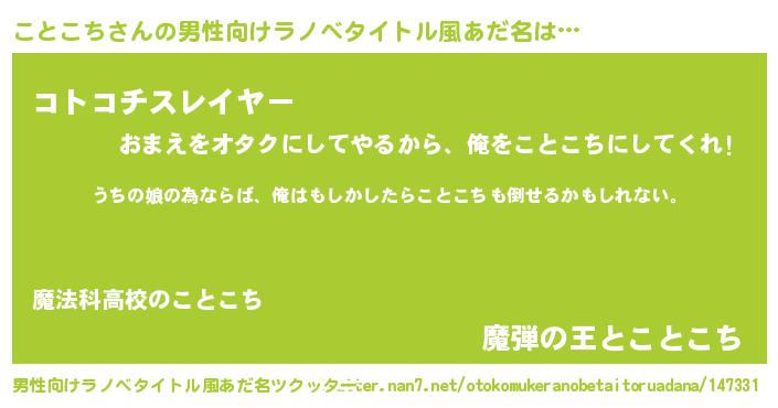 | 女子向けラノベタイトル風あだ名 | 『ことこちの婚約者』 |