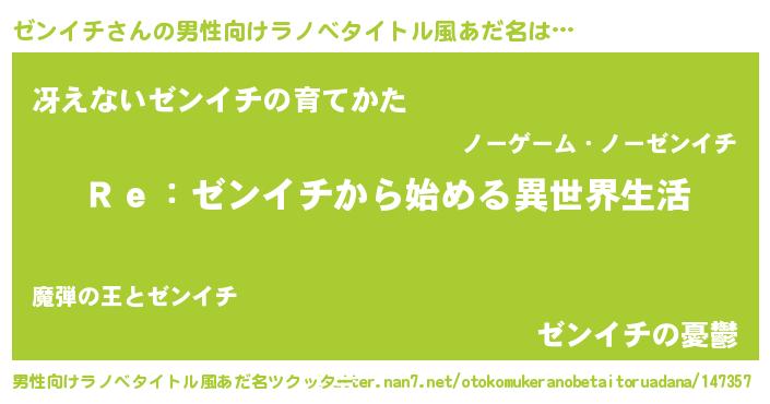 | 女子向けラノベタイトル風あだ名 | 『闇のゼンイチ』『ゼンイチ恋絵巻』 |