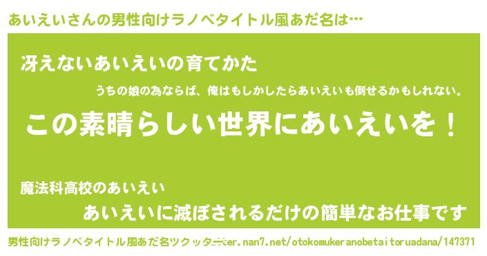 | 女子向けラノベタイトル風あだ名 | 『悪役あいえいに転生したようですが、知った事ではありません』 |