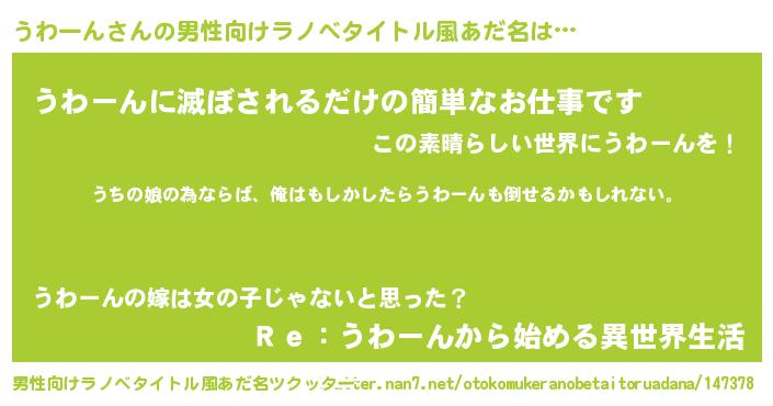 | 女子向けラノベタイトル風あだ名 | 『うわーんの婚約者』 |